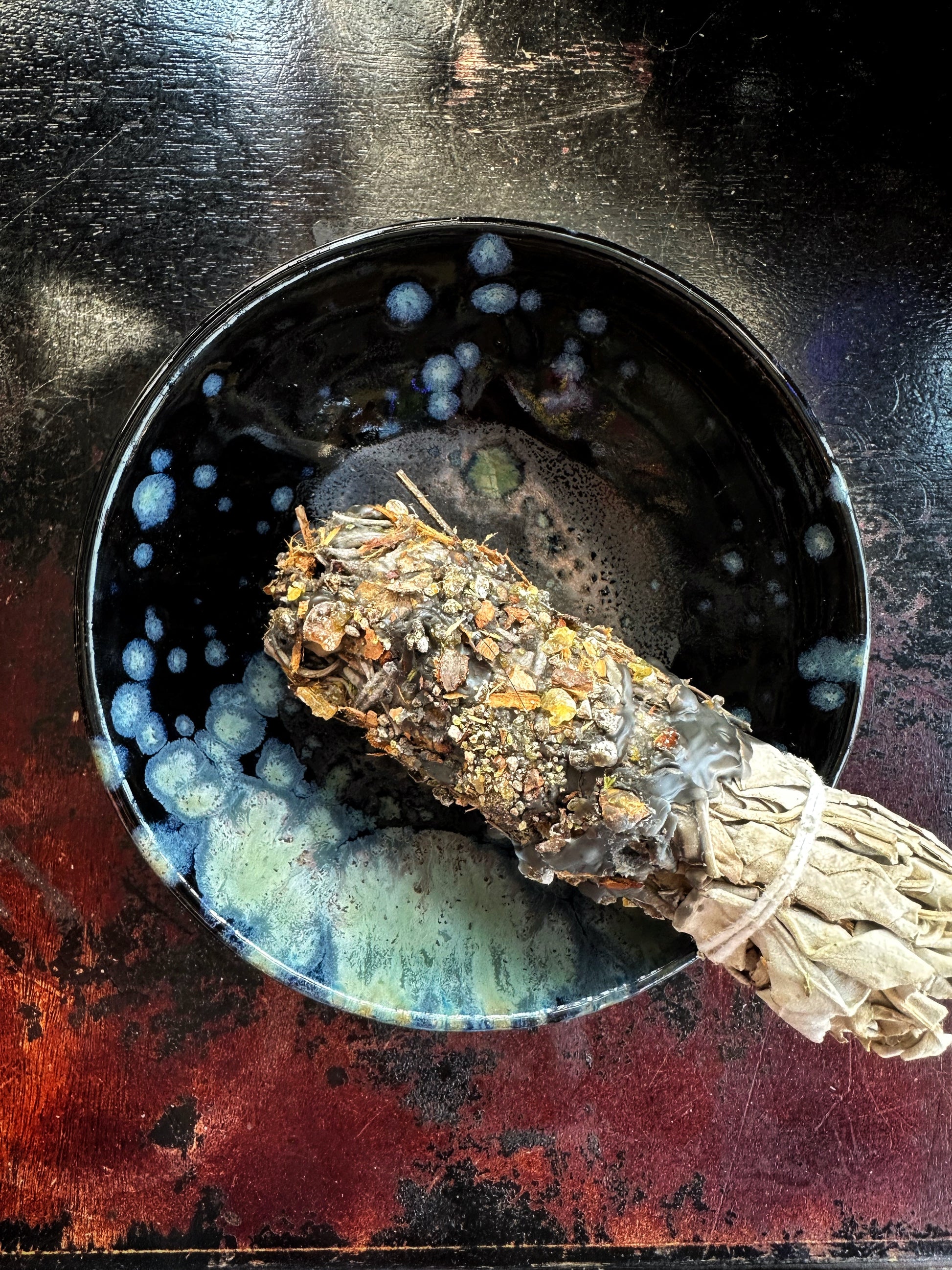 These in-house, handmade, stoneware vessels are made for ritual use or altar decor inspired by the natural material of abalone shells and metallic sands. Due to nature of the material and the fact it is handmade, expect each piece to be unique.